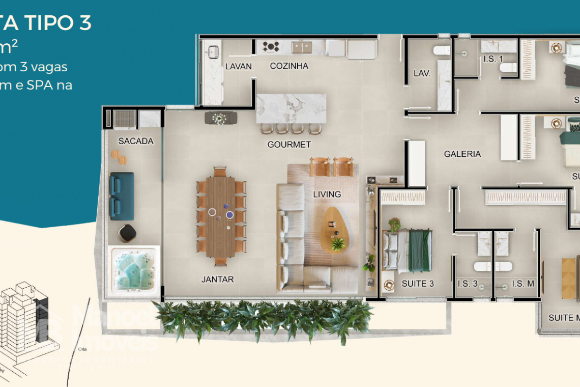 153,25 m² privativos – 3 suítes, 2 vagas de garagem e um SPA privativo na sacada, para momentos de puro deleite.