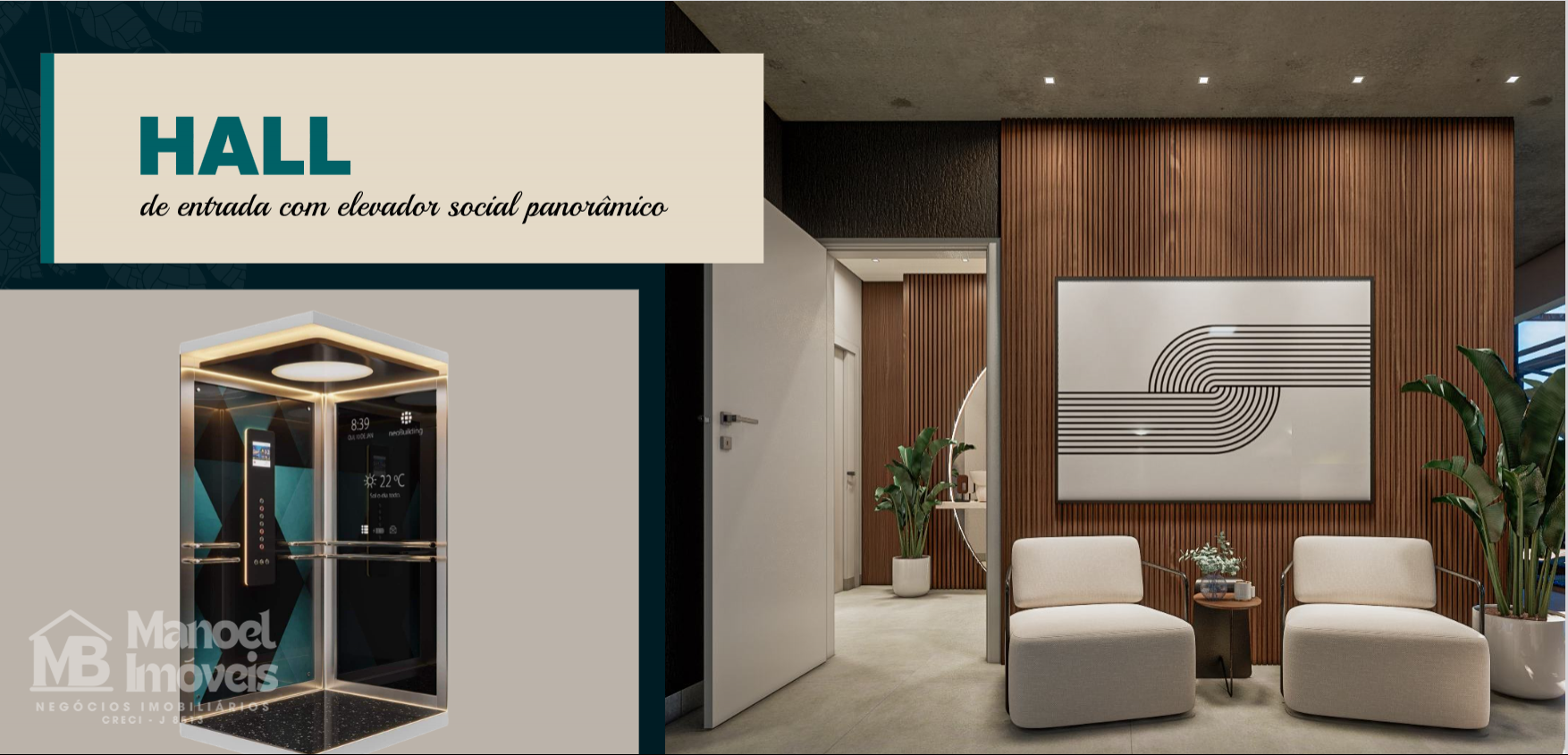 Hall de entrada com elevador panorâmico