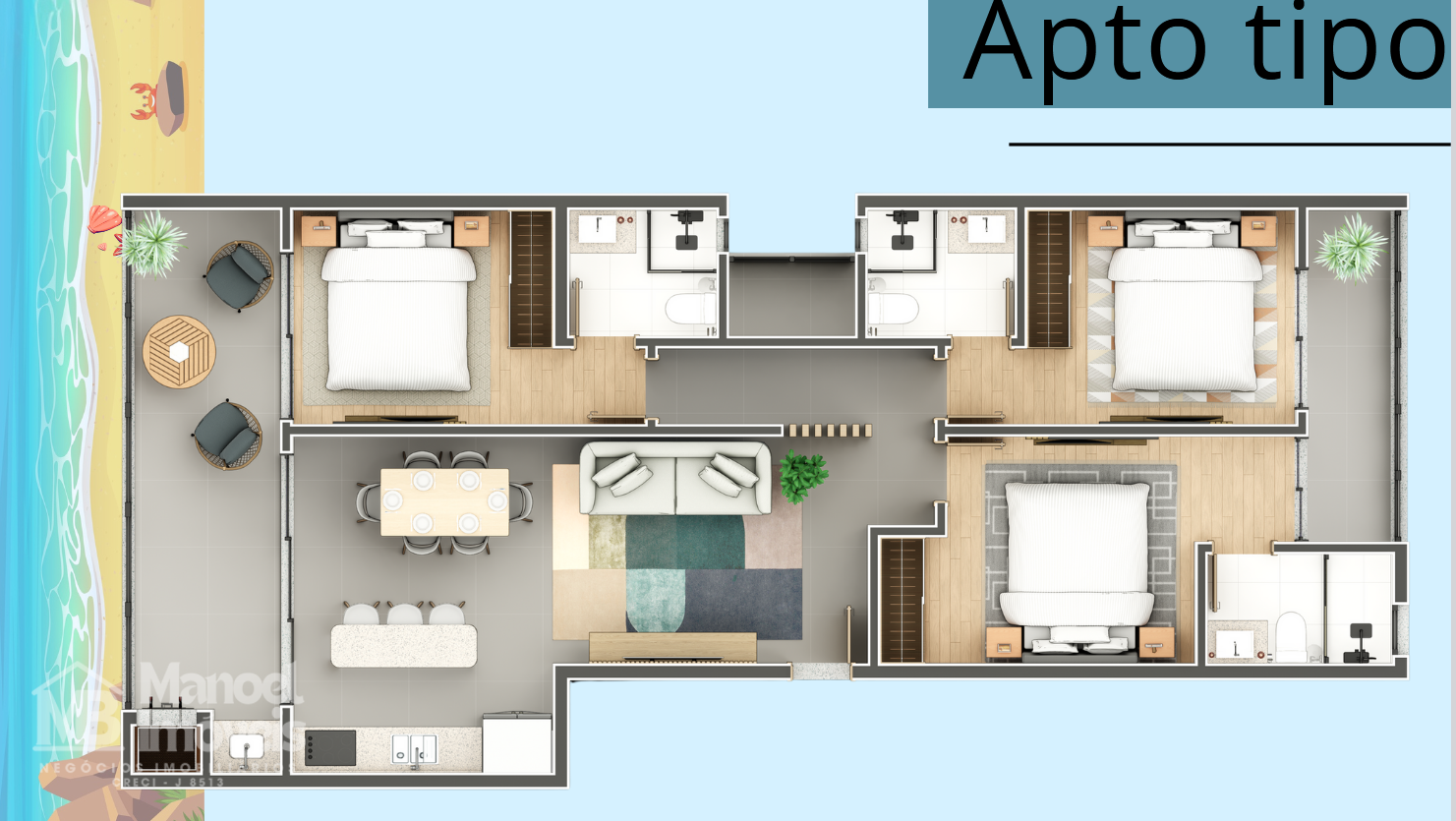 3 dormitórios /sendo 3 suítes