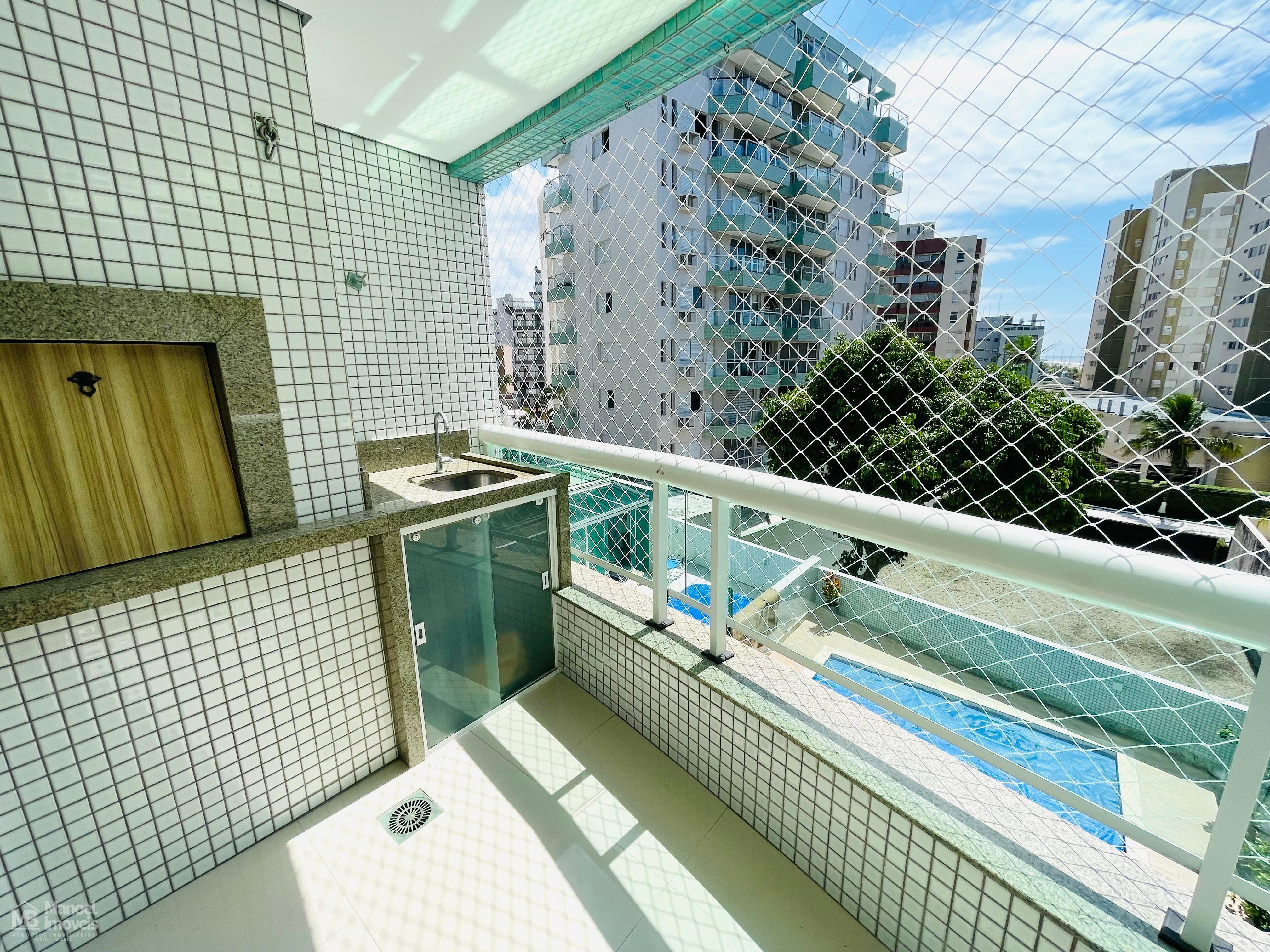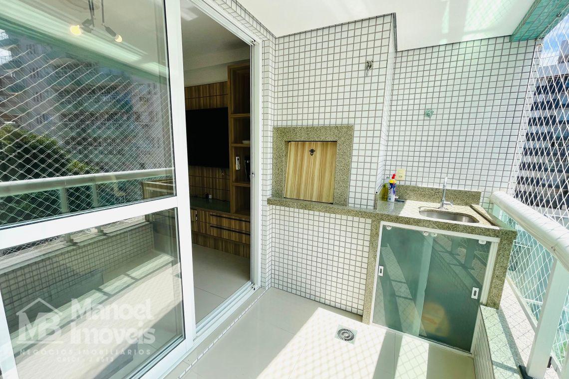 A sala e a copa, amplas e arejadas, estendem-se até a sacada com churrasqueira,