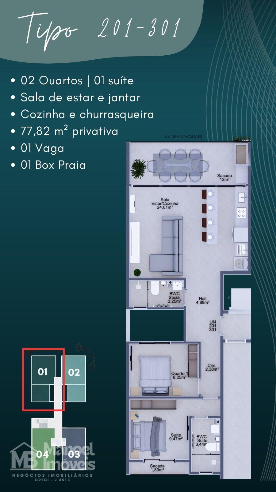 dormitórios, sendo 1 suíte