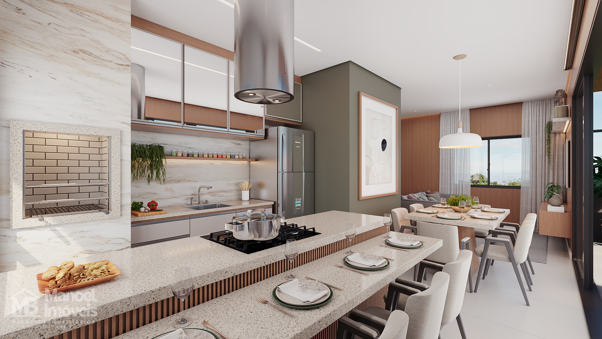 Ambientes amplos e integrados;